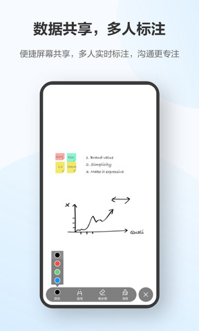 2、共享白板,支持软硬终端多方同步标记,易于保存合作内容。