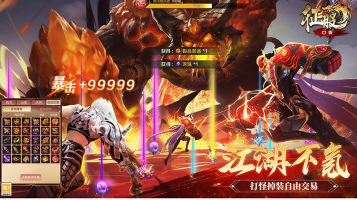 全屏收割,全屏掉落,最好的装备全靠打,开放式游戏玩法,与兄弟一起称霸指尖江湖。