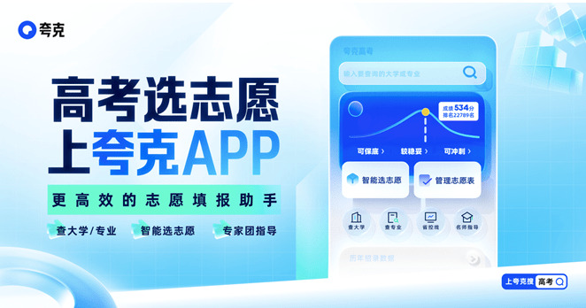 夸克高考app是一款靠谱有用的高考志愿填报服务软件。软件提供从模拟估分填志愿到正式出分选志愿的全程免费智能志愿指导,为考生提供全方位的支持。夸克高考app还能根据考生成绩为用户提供院校推荐,并针对某个特定院校还提供预测录取概率功能,利用大数据和历史招录数据,综合分析考生录取的可能性。有需要的用户,就来下载吧!