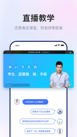 1.全新教学模式,和老师双向互动,轻松学日语、英语、法语、德语、韩语、西语等。