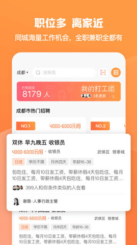 2.根据不同的岗位、地点和薪资等条件,进行高效的求职信息搜索,快速找到适合的工作机会。