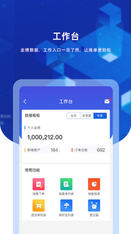 1、方便员工随时随地管理客户,下达销售订单,处理订单,查看报告分析。