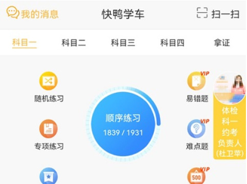 快鸭学车app是一款智能模拟学车练车的软件,提供丰富的学习资料,包括科目一、科目二、科目三和科目四的理论知识、模拟考试题库、驾考路线等。学员可以通过快鸭学车app绑定学车馆来选择驾校、教练和练车时间,快速预约驾驶舱练车并实时查看剩余预约时段,方便快捷地进行驾驶培训,提高学车的效率和便利性。