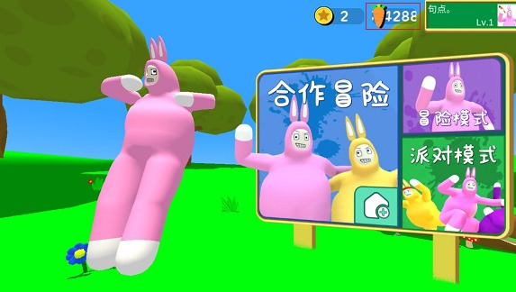 超级兔子人联机版是一款极具魔性的RPG动作冒险双人联机手游。每个玩家都可以自定义自己的超级兔子人角色,提供丰富多样的关卡和策略冒险玩法,你还可以与好友一起进行联机组队。在超级兔子人联机版游戏中,你将使用各种神奇的操作去寻找隐藏的红萝卜,但你只能通过翻滚前进,并需要小心应对各种障碍和悬崖!
