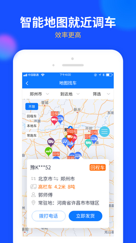 精准的车源检索和有效管理货源,让广大用户找物流更容易。