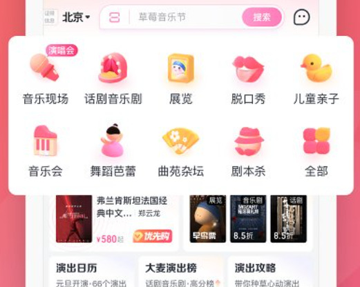 2.下载的软件有广泛的活动选择,包括音乐会、演唱会、话剧、体育比赛等。