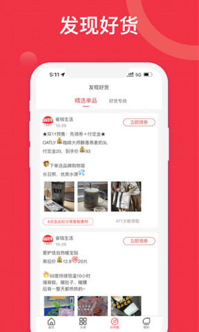 软件拥有很多优惠券可以免费领取,用户可以通过领取这些优惠券进一步降低购物成本。