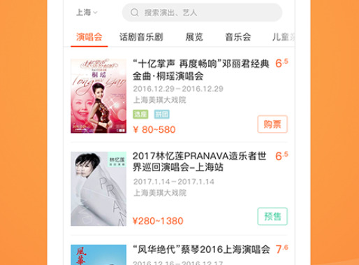 覆盖多座城市,连接多家演出、体育场馆,热门演出赛事一网打尽。