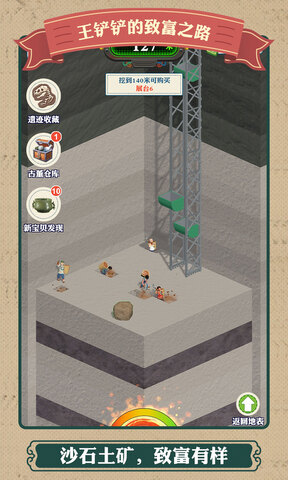 王铲铲的致富之路免广告无限钞票版是一款复古风格模拟经营类型的游戏。游戏中有丰富的挖宝场景和多样的宝藏等待着玩家的发掘,除了挖宝,玩家还可以经营自己的店铺,将挖到的宝藏出售给其他玩家,赚取更多的金钱。王铲铲的致富之路免广告无限钞票版游戏中,玩家可以随意挥霍使用无限钞票、金币钻石,体验非常爽!喜欢的玩家,来下载吧!