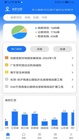 路桥地图是一款专为交通工程建设行业提供信息查询的APP。它收集了公路项目、铁路项目和地铁项目的相关信息,包括项目进展情况、施工单位以及施工位置。这为交通行业下游的设备和材料厂商提供了及时、准确和全面的项目数据信息服务。