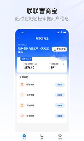 联联营商宝是一款功能全面、易于使用的手机店铺管理软件。软件提供了一系列营销操作,能够方便快捷地帮助用户管理店铺,用户只需轻轻一点,即可轻松获取订单详情,并实时检索订单状态等相关信息。联联营商宝软件还支持多项功能,能够解决用户的店铺营销管理问题,使店铺营销更加轻松高效。有需要的用户,不要错过,快来下载吧!