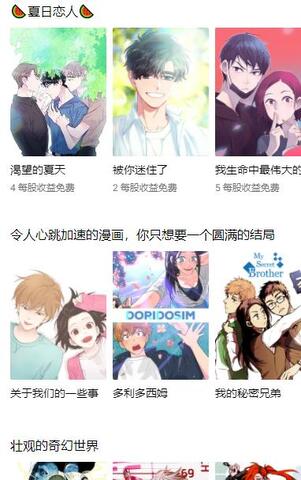 3.非常简洁的界面设计,整个页面上的漫画分类可以非常清楚的查看得到。
