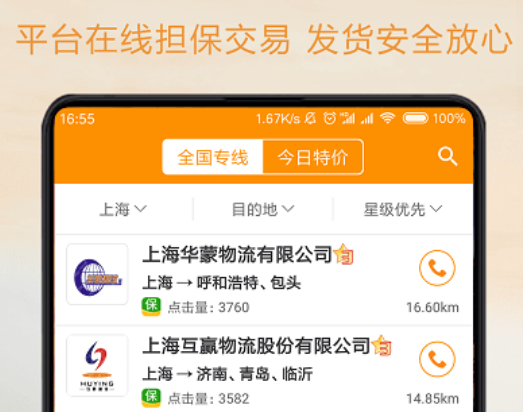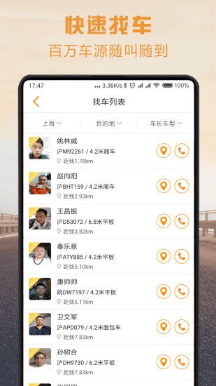 1.依托强大的市场推广和运营能力,聚集海量的各类货运车辆,让您的发货选择更广。