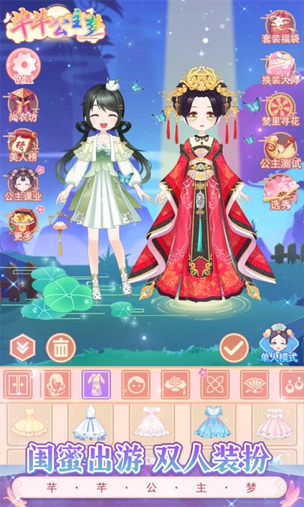 上百件风格各异的精美服饰,尽情打造心中最美的公主模样。
