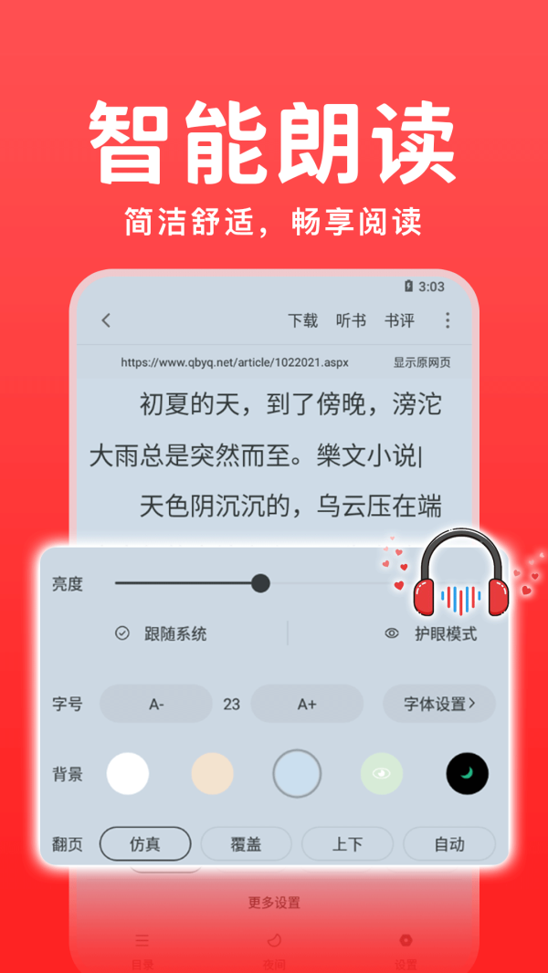 1.精致的阅读排版,舒适的字体间距,新增护眼模式,打造沉浸式阅读体验。