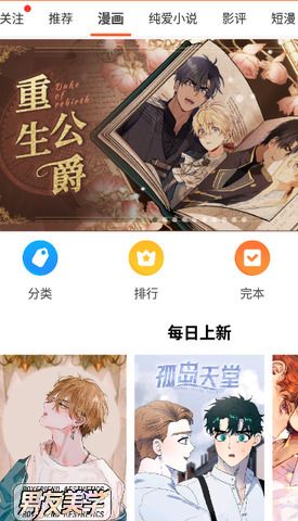 2.国漫、日漫、美漫、完结的、热血的等漫画统统搜罗,分类齐全。