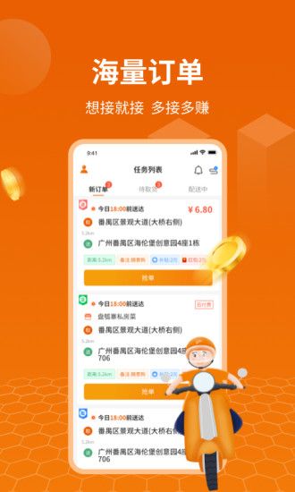 3.每天都有海量订单,保障每一位骑手每天都能接到丰富的订单。