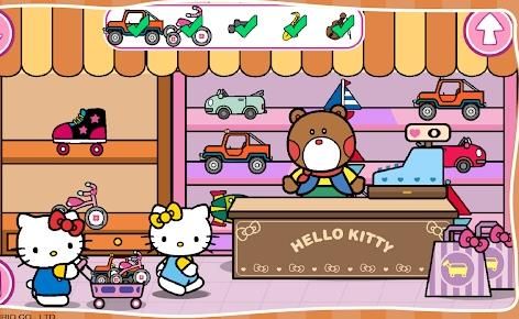 2.卡通的游戏画风,精彩有趣的游戏体验,和凯蒂猫以及小伙伴们一起去购物。