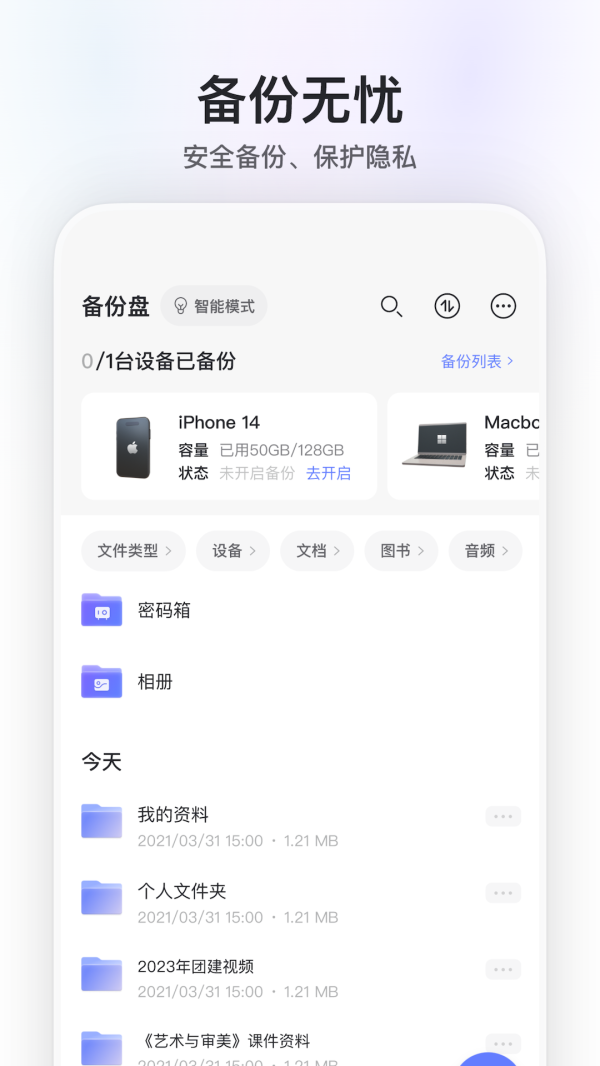 3、移动电话备份:在手机上自动备份照片视频,为手机腾出更多空间。