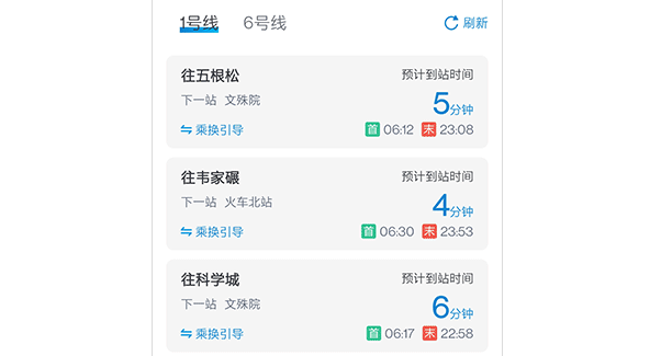 4.早/晚出发时间:智能计算您可到达目的站的早/晚地铁搭乘时间,帮助您合理安排行程。