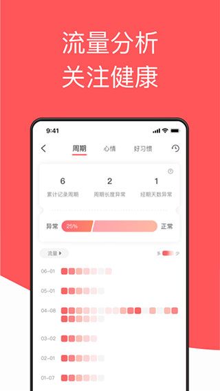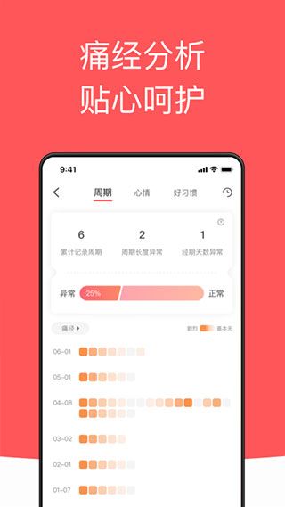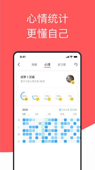 2、完整记录:满足您每天记录月经、流量、痛经、爱情、情绪、习惯的需要。