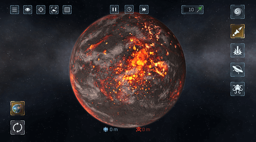 3、玩家可以用各种力量破坏星球,也可以直接用黑洞和陨石破坏星球,然后重塑一个新的星球。