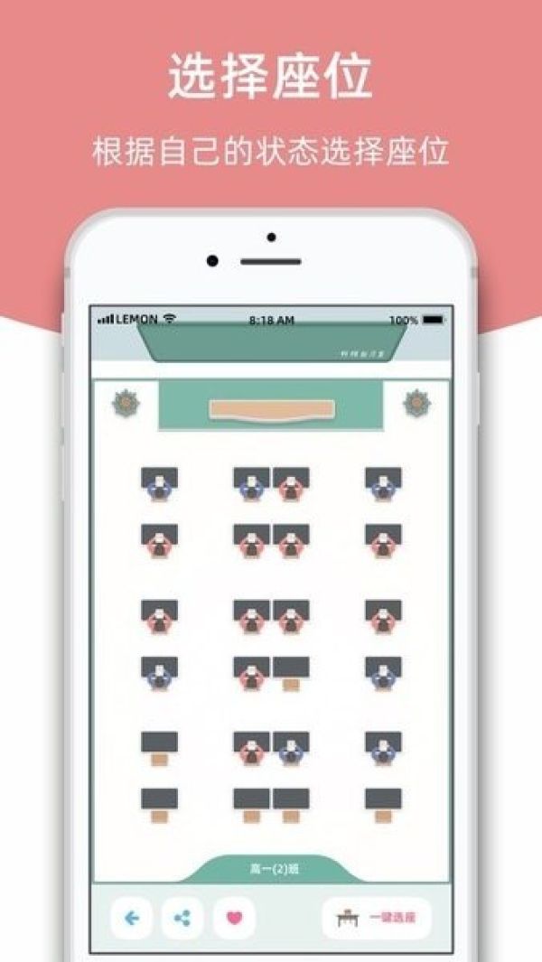 1、实时显示自习室内每个座位的使用情况,并提供座位预约、释放座位等功能。