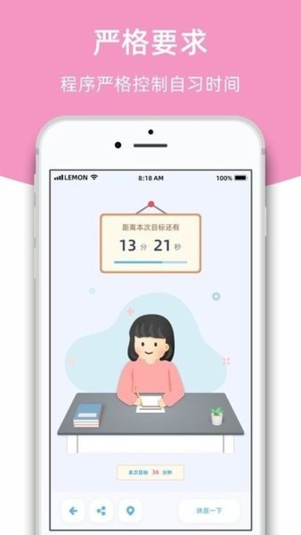 进入自习时间段后,APP会进入专属的自习界面,用户可以集中精力进行学习。