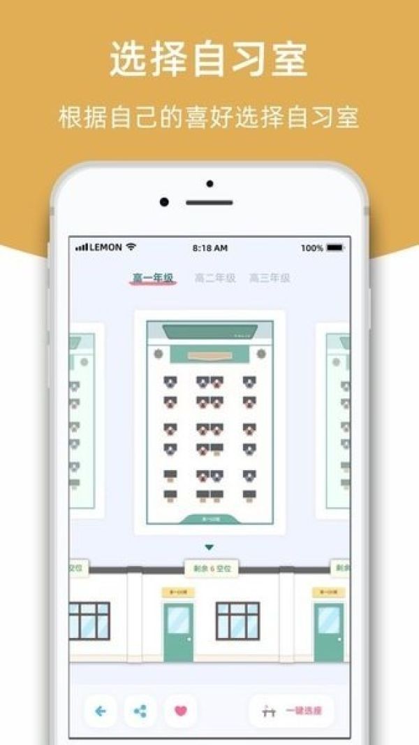 1、用户可以通过APP预约自习室的时间和座位,避免人满为患的情况。
