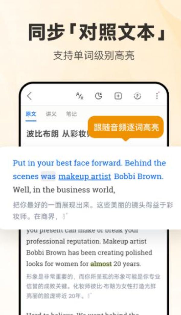 2.每天更新的海量听力库,独家提供智能语音高亮跟随功能,还支持批量下载,离线情况下也能随时用。