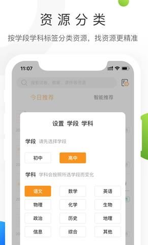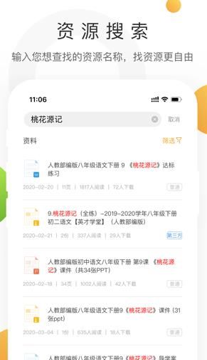 1.支持按学科学段标签分类、输入想查找的资源名称等方式搜索,找资源更自由。