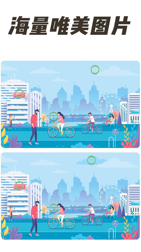 1. 有趣的找茬玩法:玩家需要在两幅看似相同的图片中找出不一样的地方,挑战自己的观察能力和速度。