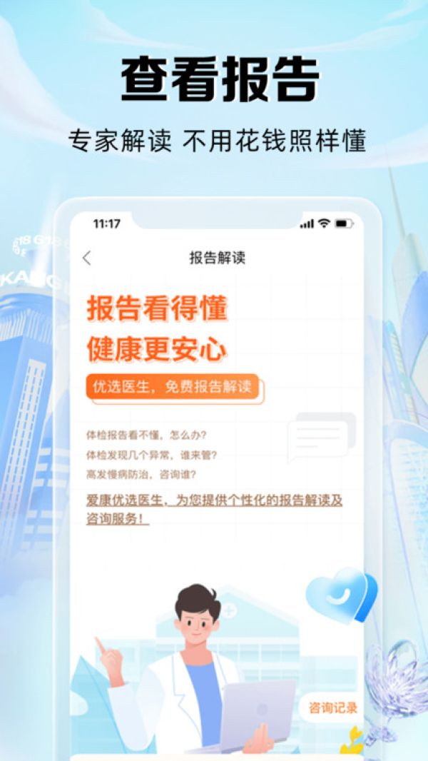 软件拥有体检报告查询,报告专家解读,智能导检等功能,为用户提供体检全程优质便捷的服务。