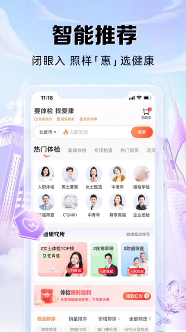 1、人性化:通过个性化的体检,了解自己的身体机能、日常习惯、家族史、体检史。