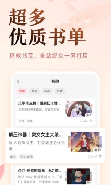 3.有言情、现实情感、悬疑、脑洞、科幻、武侠等分门别类的故事,给你更丰富的阅读体验。