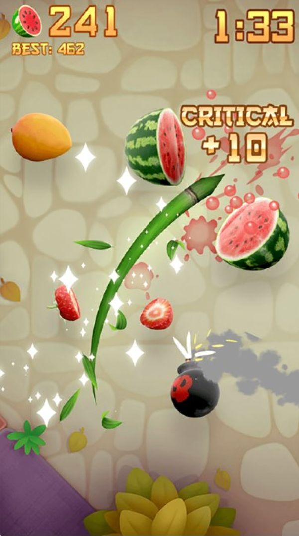 2.玩家需要使用手指滑动屏幕来切割水果,一刀斩碎水果,得分增加。