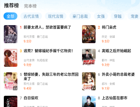 3.可以根据字数限制、是否完结、评分情况、最新力作来挑选爱看的书。