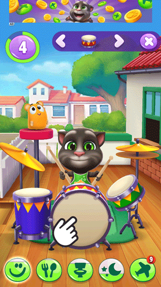 3、与汤姆互动:与汤姆对话,他会重复你的话。戳、抚摸或挠他痒痒,看他的反应。