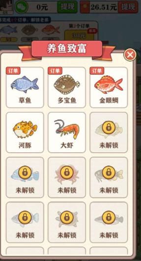 售卖各种各样的鱼类,积累财富,过上有钱人的生活。