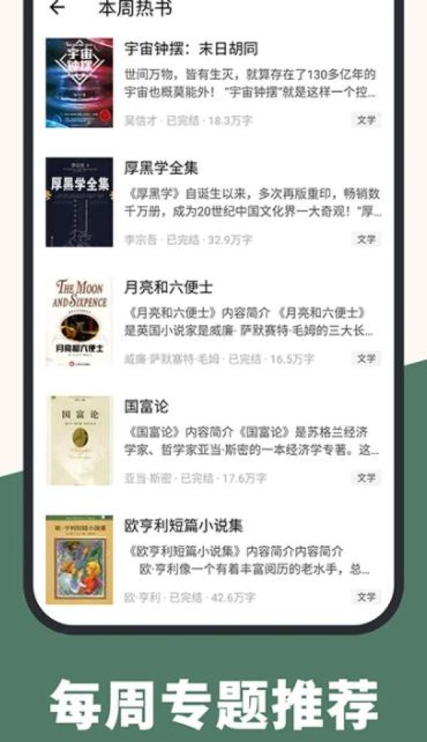 3.根据用户的阅读爱好,个性化推荐,还有优质书单,书城精细化推荐,总有你喜欢的。