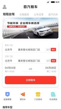 1.快速预订:首汽租车app支持在线预订车辆,用户只需填写用车时间和地点,就可以快速预订到合适的车辆。