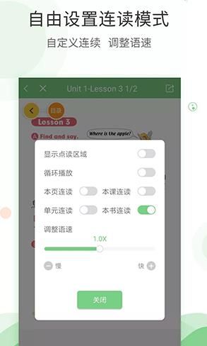 2.各种不同的跟读点读方式,能够设置连读模式,调整语速等。
