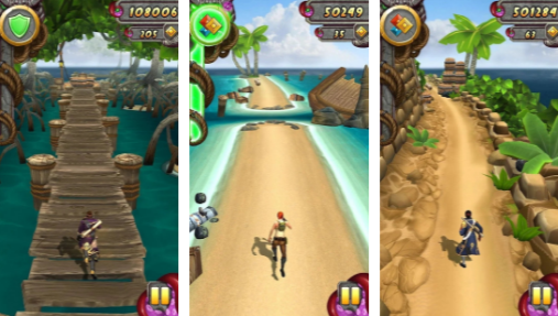 2、丰富的游戏玩法,众多英雄在神庙等多个场景中不停的奔跑,触屏转弯、跳跃等多种操作模式,让你体验最酷炫的跑酷玩法!