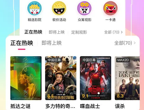 1.全面的电影票务服务,如在线选座、购票、退票等。