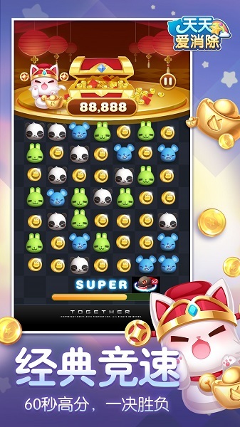 天天爱消除是以“消除烦恼,治愈心灵”为了消除手机游戏的主题,陪伴玩家度过7个寒冷的夏天。在天天爱消除游戏中轻轻划动手指,将三个相同的小动物碎片连接成一行或一列,你可以完成一个消除哦!同时巧妙地安排消除时间,灵活地使用消除道具和关卡机制,为你的消除旅程提供全新的玩法!同时多达3000多个关卡,数十个冒险模式,全新的挑战冒险,q版清新的画风,治愈轻松的玩法,在这里消磨时间,随时还能够放松心情哦!