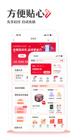 4.【亲密支付】自动充值告别停机电话费扣除,永不停机;电话费扣除享受9.95折优惠,开放也可获得现金。