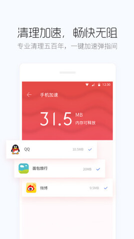 “一键检测”速度取决于用户手机中安装了多少程序。软件测试后,我们可以根据自己的需要逐一优化。