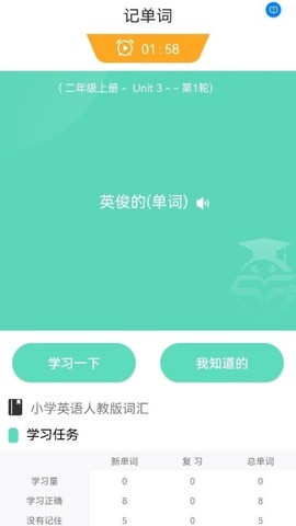 1.记忆单词是软件给出单词或词义,由学生自己判断是否认识。