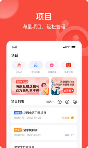 海康互联Pro是一款专门面向工程项目管理的办公软件。软件功能强大,帮助管理人员轻松连接现场设备,支持在线快速启动,实时远程监控设备运行,大大提高管理效率,使用方便。海康互联Pro是由海康推出的系统运维工具,提供办公效率,提供售前、售中、售后一站式项目管理服务。软件功能齐全,为安防从业人员服务,通过实用工具、一键交付、批量调试设备、获取托管权限等使用功能,降低现场维护成本,简化繁琐工作,提高项目管理效率。有需要的用户,就来下载海康互联Pro体验吧!