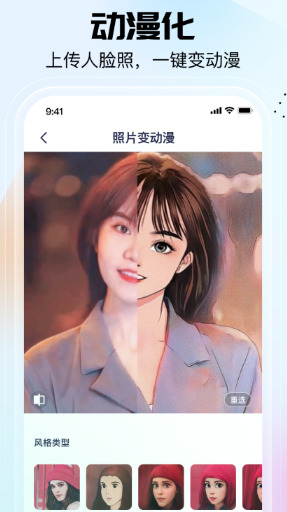 1、漫画脸效果:选择一张照片,一键生成专属动画形象。